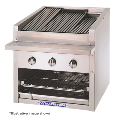 The Bakers Pride® model C-60R charbroiler features H burners for energy efficiency and broiling performance. The seven H burners produce a total output of 252,000 BTUH while allowing for consistent cooking. A continuously lit, crossover pilot tube system makes lighting burners quick and easy.