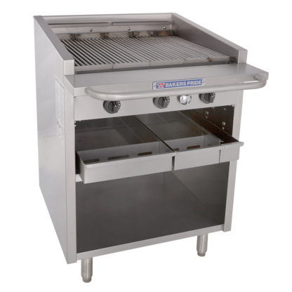 The Bakers Pride F-30R natural gas floor model, cabinet style radiant charbroiler is perfect for creating smoky appetizers, sides, and entrees in your high volume commercial kitchen. With three 36,000 BTU burners providing superior heat distribution beneath the 14 gauge stainless steel radiants, you’re sure to get the sizzling steaks, juicy hamburgers, and mouth-watering ribs you’re known for.