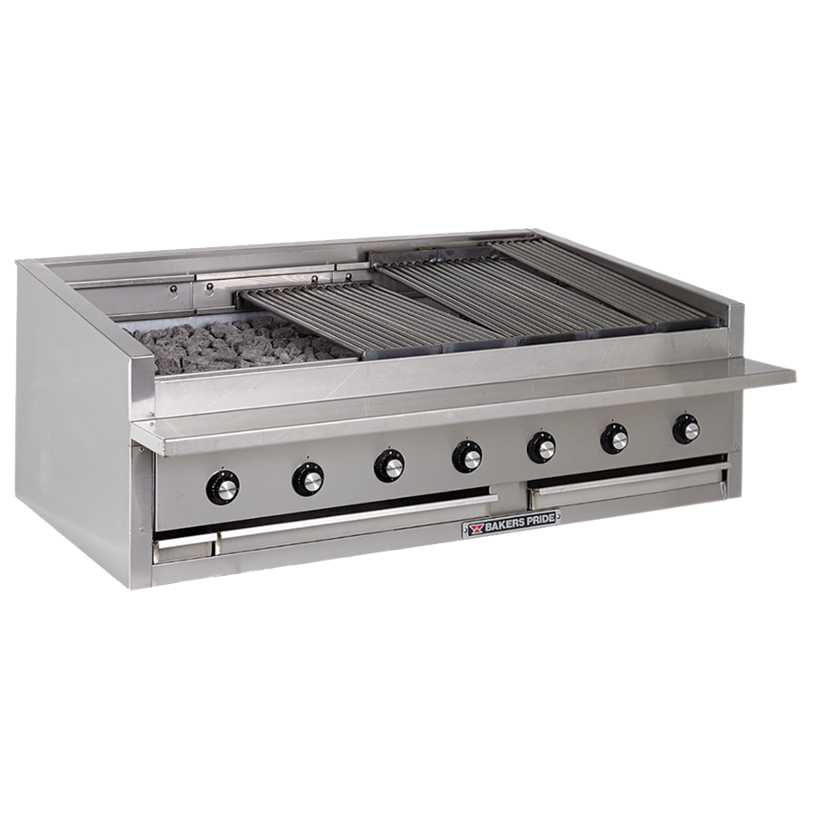 The Bakers Pride® model L-60R is a low-profile charbroiler with H burners for energy efficiency and broiling performance. The seven H burners produce a total output of 252,000 BTUH while allowing for consistent cooking. A continuously lit, crossover pilot tube system makes lighting burners quick and easy.