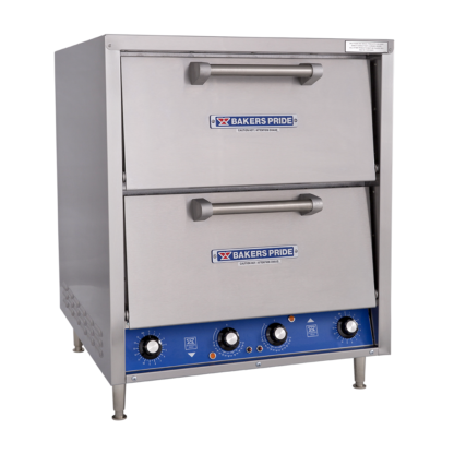 The Bakers Pride P-46BL brick lined electric countertop bake and roast / pizza oven comes complete with continuous ring timers, each with manual shut-off. Includes 4″ adjustable legs that are required if set on a counter.