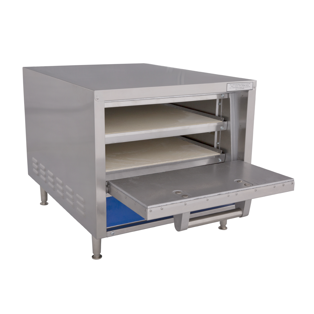 The Bakers Pride® model P18S oven is designed for pizza, pretzels, flat breads, and other bakery products. Bake directly on the decks, on screens, or on baking sheets. This oven features one baking chamber with two Cordierite decks and a 3.25″ deck height. This model comes standard with a stainless steel exterior, 4” adjustable legs, and a 15-minute, electric timer with continuous-ring alarm and manual shut-off. The P18S is available with 120, 208, or 240 V; however, 120 V is not recommended for fresh-dough pizza. International voltages are available.