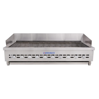 With is all stainless steel exterior, this radiant charbroiler offers superior ventilation and cooler outer temperatures, perfect for use on top of refrigerated chef bases. Its ten cast iron top grates feature channels to direct grease into the front trough for easy cleanup. This Bakers Pride radiant charbroiler also includes a slide out stainless steel water pan and grease drawer, flame guards, and 4″ chrome plated adjustable legs.