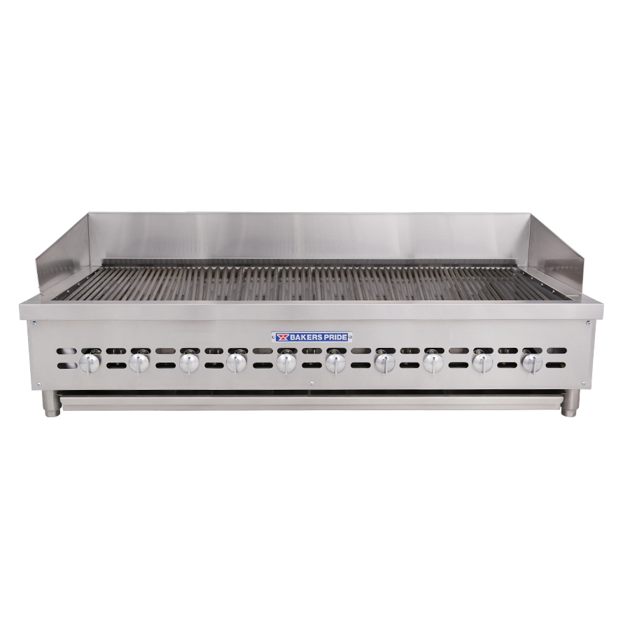 The Bakers Pride XX-10 countertop radiant charbroiler features an exceptionally low profile design that sits just 13 1/4″ to the broiling surface. It uses ten 24″ deep, 18,000 BTU clog-proof and high efficiency burners to effortlessly create sizzling steaks, juicy hamburgers, mouth-watering ribs, and smoky shish kabobs.