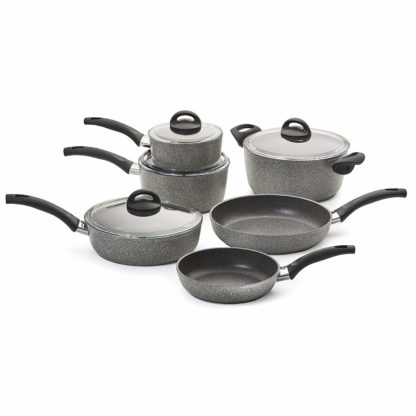 I can’t get enough of my Ballarini set. I just love it! The set arrived earlier than expected and everything was packaged great. Holding each individual item on the set feels luxuriously durable and will withstand the demands of my busy kitchen. I gave it a shot and made sure I tried each item on the set at least thrice before posting this review and the entire set did not disappoint. Heat is distributed equally and the cook overall is even. It cleans up well and I don’t need to have my staff scrub it like crazy to make sure it’s tidy for the next use. Great functionality and I only have to use oil when the dish calls for it. Perfect for home use or for small businesses like me.