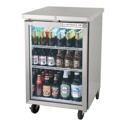 The Beverage Air BB24HC-1-G-S refrigerated back bar storage cabinet has an attractive and durable stainless steel exterior that matches any bar decoration. To merchandise products to a potential customer, the unit has a transparent, glass door. Prepackaged bottles are illuminated by LED fixtures on the interior.