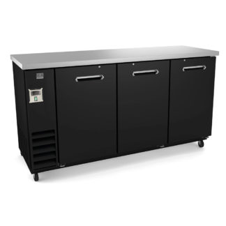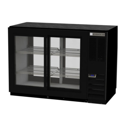 The balanced, forced-air refrigeration system of the Beverage Air BB48HC-1-GS-F-PT-S bar cooler provides rapid chilling of product and maintains temperatures between 36 and 38 degrees Fahrenheit. Its self-closing glass doors have a stay-open feature, enabling frequent restocking. To effectively retain cold air, its magnetic door gaskets create a positive seal.