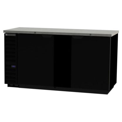 Refrigerated Food Rated Back Bar Storage Cabinet, two-section, 69″W, 37-1/4″ H, 25.93 cu. ft., (2) solid doors, snap-in door gasket, (4) epoxy coated steel shelves, (3) 1/2 barrel kegs, LED interior lighting with manual on/off switch, stainless steel top, stainless steel interior with radius corners is easy to keep & meets NSF Standard 7 for open food container, left-mounted self-contained refrigeration with storage above, R290 Hydrocarbon refrigerant, 1/3 HP, cULus, UL EPH Classified, UL-Sanitation, Made in USA