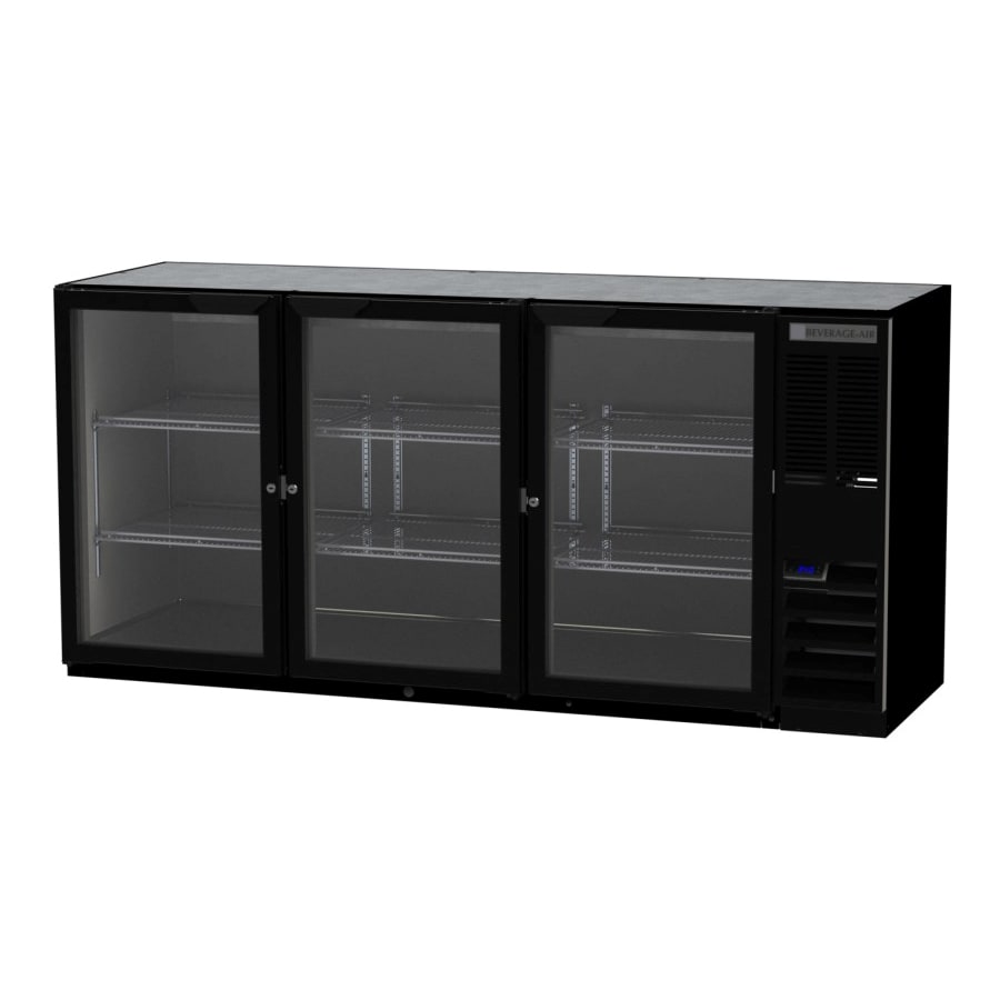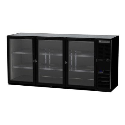 LED lights shine on the stored product for visibility, while the glass doors ensure the items are visible from the exterior. This eliminates the need to open the door often and allow cold air to leak out. To keep cold air inside the Beverage Air BB72HC-1-FG-B three-section bar refrigerator, the doors have a self-closing deign. Their stay-open feature makes it easy to stock product into the cabinet.