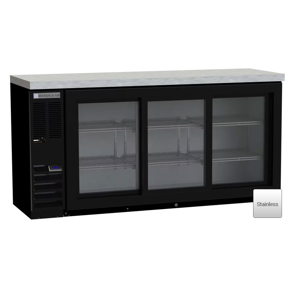 With their self-closing design, the three doors provide access to product while keeping cold air inside the Beverage Air BB78HC-1-FG-S three-section bar refrigerator. The stay-open feature props the door open, so cleaning and stocking the cabinet is simple. Access to the interior is limited by the door locks, preventing product tampering and theft. Thanks to the glass panes, product is visible without needing to open the doors.