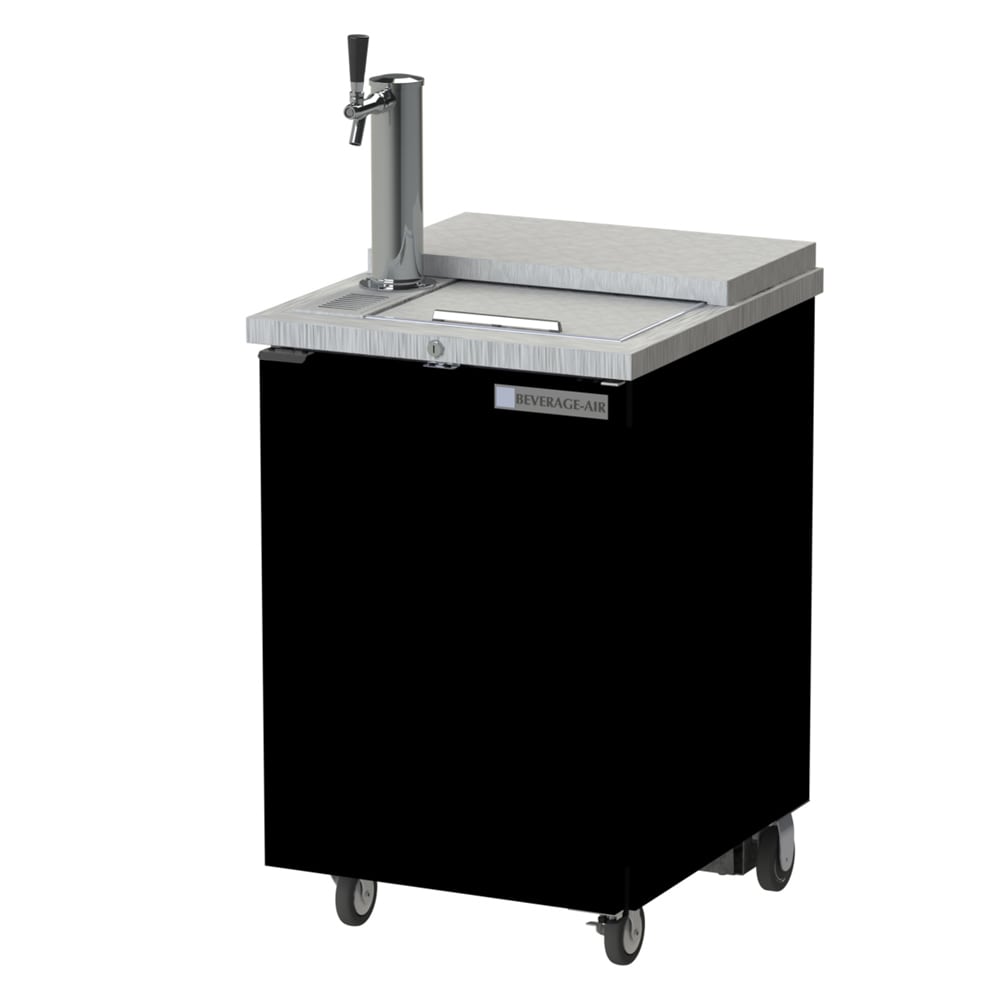 Draft Beer Cooler, portable, 24″ W, 7.66 cu. ft., club type, self-closing door with locks, self-contained refrigeration, one-keg capacity, storage area, 2-1/2″ insulated tower with single faucet, black exterior, black club top with stainless steel lid, galvanized interior, stainless steel floor, 4″ casters, R290 Hydrocarbon refrigerant, 1/6 HP, UL, cULus, UL EPH, UL-Sanitation, MADE IN USA, 115v/60/1ph