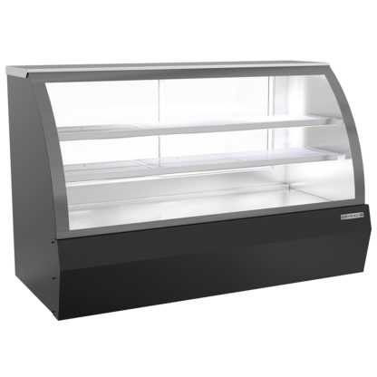 Refrigerated Deli Case, open food rated, 73-11/16″ W, 21 cu. ft. capacity, curved front glass, removable sliding glass rear doors, maintenance free condenser, self-contained refrigeration, (2) adjustable shelves, price tag molding, LED interior lighting, electrical outlet for scale, hot gas condensate evaporator, stainless steel interior with mirrored end caps, black exterior, R290 Hydrocarbon refrigerant, 1/4 HP, cETLus, ETL-Sanitation