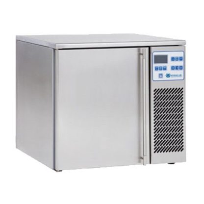 Mini Blast Chiller/Freezer, countertop unit, 17.6 lb. capacity (chilling) or 11 lb. capacity (freezing), 7.3 cu. ft., (3) 13″ x 21″ pan capacity, core probe, 194° F to 37° F in 90 minute chilling cycle, 194° F to 0° F in 240 minute freezing cycle, manual defrost, stainless steel interior & exterior, self-contained refrigeration, R404A refrigerant, cETLus, ETL-Sanitation