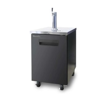 Draft Beer Cooler, 36″W, 51-1/4″H, 8.31 cu. ft., (1) door, (1) 1/2 keg capacity, door locks, one dual faucet column, black exterior, stainless steel top, galvanized interior with reinforced stainless steel floor, self-contained refrigeration, R290 Hydrocarbon refrigerant, 1/4 HP, cULus, UL EPH Classified, UL-Sanitation, MADE IN USA