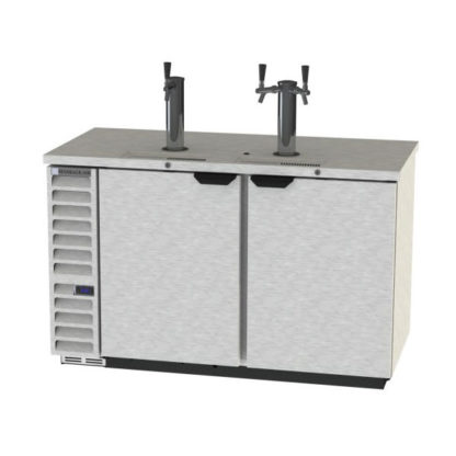Draft Beer Cooler, Club Type, 59″ W, 28-3/16″ D, 21.86 cu. ft., (2) doors, (2) slide back lids – (1) with shelf and (1) with basket, (3) keg capacity, door locks, (2) single faucet columns, stainless steel top & front, galvanized interior, self-contained refrigeration, R290 Hydrocarbon refrigerant, 1/4 HP, UL, cUL, UL EPH, NSF, MADE IN USA, 115v/60/1ph