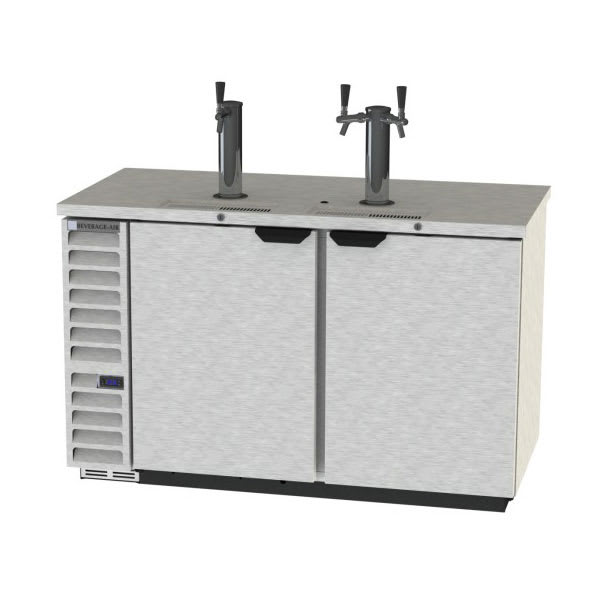 The Beverage Air DD58HC-1-C-S draft beer dispensing system has antimicrobial tubing lined with natural silver to deliver liquid from the stored beverage containers to the taps, ensuring optimal flavor and freshness. Because the taps and columns are made of stainless steel, they are reliable for extended use. Inside the cabinet, three full kegs are kept cold and ready to serve for reduced wait times.