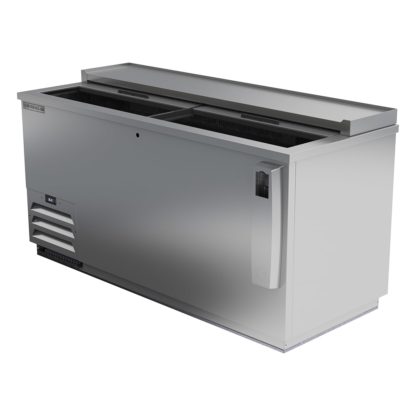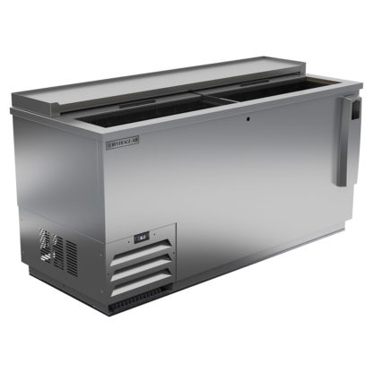 Bottle Cooler, flat top, 65″W, 26-1/2″D, 18.5 cu. ft., (2) sliding lids, (4) adjustable wire dividers, deep well design, bottle cap opener & cap catcher, galvanized interior with stainless steel floor, stainless steel top & exterior, self-contained refrigeration system, R290 Hydrocarbon refrigerant, 1/4 HP, UL, cULus, UL EPH Classified, UL-Sanitation, MADE IN USA