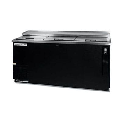 With its sleek, black exterior, the Beverage Air DW79HC-B-29 bottle cooler looks nice behind the bar. It has a durable, stainless steel top and a sturdy, galvanized interior. Stainless steel is corrosion resistant and the pan dividers are epoxy coated for further protection. These dividers offer a space between different types of product for quick retrieval and they’re made of wire, so air flows evenly throughout them. The cabinet is accessed behind three sliding lids.