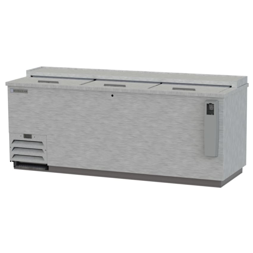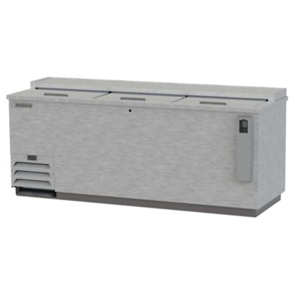 Frosty Brew Bottle Cooler, 80″W x 26-1/2″D x 33-3/4″H, 24.1 cu. ft., (3) sliding lids, (5) adjustable epoxy coated wire dividers, case capacity: 32 cases (12 oz. bottles) or 45-3/4 cases (12 oz. cans), electronic controls, flat top, holds below 32° F, deep well design, adjustable dividers, bottle cap opener & cap catcher, stainless steel exterior, galvanized interior, stainless steel top, self-contained refrigeration, R290 hydrocarbon refrigerant, 1/4 HP, cULus, UL EPH Classified, UL-Sanitation, Made in USA
