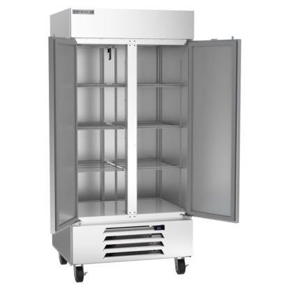 Horizon Series Refrigerator, reach-in, two-section, 39-1/2″W, 84″H, 36.87 cu. ft. capacity, (1) right-hand solid hinged door (lockable), (1) left-hand solid hinged door (lockable), (6) adjustable shelves, electronic control, LED interior lighting, digital display, adaptive defrost, bottom mounted self-contained refrigeration, stainless steel interior, exterior stainless steel front, sides & grille, galvanized back & bottom, R290 Hydrocarbon refrigerant, 1/4 HP, cULus, UL EPH Classified, UL-Sanitation, Made in USA