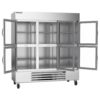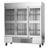 Horizon Series Refrigerator, reach-in, three-section, 68.93 cu. ft. capacity, (2) center glass half doors right-hand hinged, (2) right glass half doors right-hand hinged, (2) left glass half doors left-hand hinged, (9) adjustable shelves, electronic control, LED interior lighting, digital display, adaptive defrost, stainless steel interior, exterior stainless steel front, sides & grille, galvanized back & bottom, bottom mounted self-contained refrigeration, R290 Hydrocarbon refrigerant, 1/2 HP, cULus, UL EPH Classified, UL-Sanitation, Made in USA