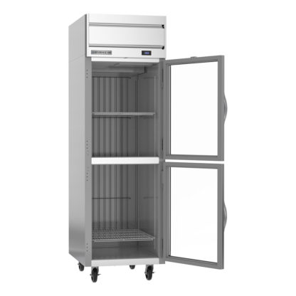 Horizon Series Freezer, reach-in, one-section, 21.06 cu. ft., (2) right-hand hinged half glass doors, (3) adjustable shelves, electronic control, LED interior lighting, digital display, expansion valve technology, automatic defrost, top-mounted self-contained refrigeration, stainless steel front, gray painted sides, aluminum interior, R290 Hydrocarbon refrigerant, 3/4 HP, cULus, UL EPH Classified, UL-Sanitation, Made in USA