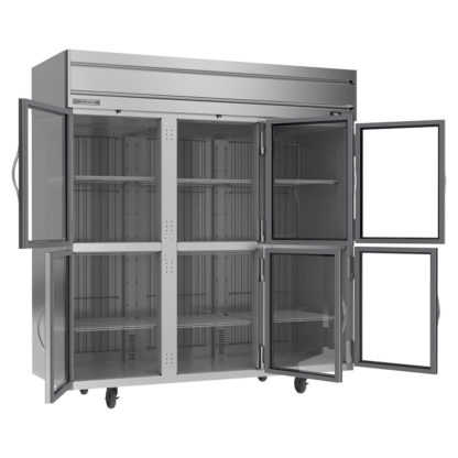 The Beverage Air HF3HC-1HG reach-in freezer has six doors that open on the top and bottom of the unit, reducing air loss. Its magnetic gaskets close tightly to retain chilled air, and the top-mounted compressor releases heat away from the freezer to maximize energy efficiency. When preventative maintenance is required, the compressor grille can be removed to shorten the process.