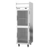 Horizon Series Freezer, reach-in, one-section, 21.06 cu. ft., (2) right-hand hinged half glass door, (3) adjustable shelves, electronic control, LED interior lighting, digital display, expansion valve technology, automatic defrost, top-mounted self-contained refrigeration, stainless steel front & sides, aluminum interior, 3/4 HP, cULus, UL EPH Classified, UL-Sanitation, Made in USA