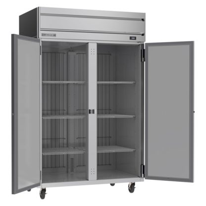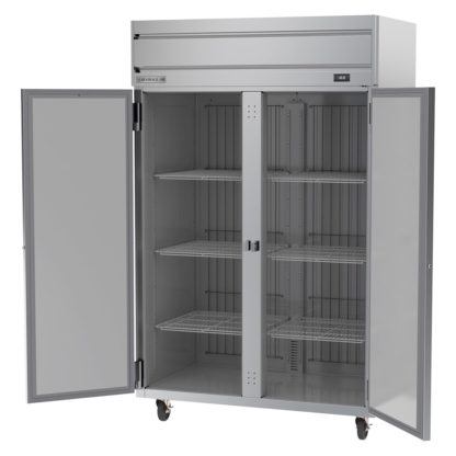 To ensure corrosion resistance and durability, the Beverage Air HFP2HC-1S reach-in freezer features six epoxy-coated wire shelves and an aluminum interior liner. Its stainless steel front resists scratching and denting, and its self-closing doors are field reversible. To enable loading and unloading the unit without obstruction, the doors remain open past 120 degrees.