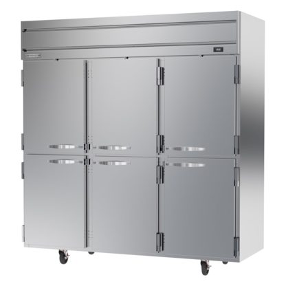 Horizon Series Freezer, reach-in, three-section, 69.1 cu. ft., (2) center half solid doors right-hand hinged, (2) right half solid doors right-hand hinged, (2) left half solid doors left-hand hinged, door locks, (9) adjustable shelves, electronic control, LED interior lighting, digital display, expansion valve technology, automatic defrost, top-mounted self-contained refrigeration, stainless steel front & sides, aluminum interior, (2) 3/4 HP, cULus, UL EPH Classified, UL-Sanitation, Made in USA