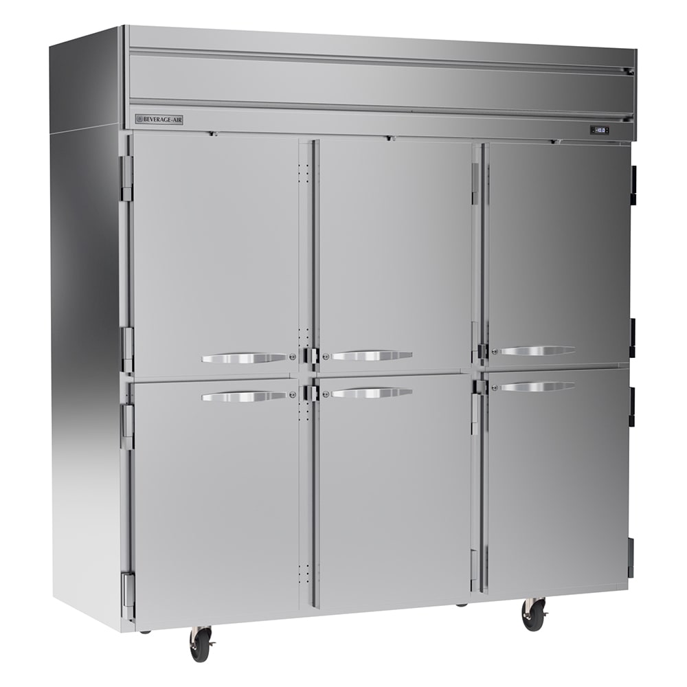 To offer comfortable mobility, the Beverage Air HFP3HC-1HS reach-in freezer is positioned on 6-inch casters. While effectively retaining cold air with snap-in magnetic door gaskets, its doors are self-closing and field reversible. This unit cools with R290 refrigerant and includes an epoxy-coated evaporator coil.