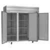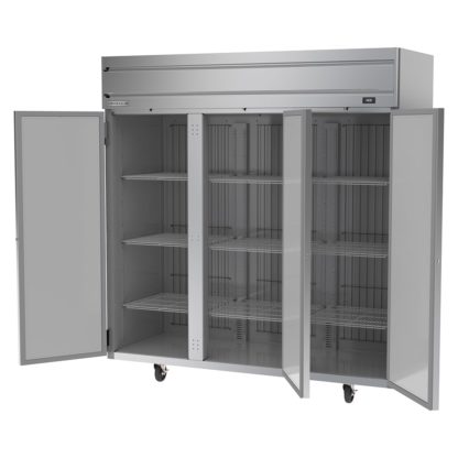 Horizon Series Freezer, reach-in, three-section, 69.1 cu. ft., (1) center solid door right-hand hinged, (1) right solid door right-hand hinged, (1) left solid door left-hand hinged, door locks, (9) adjustable shelves, electronic control, LED interior lighting, digital display, expansion valve technology, automatic defrost, top-mounted self-contained refrigeration, stainless steel front & sides, aluminum interior, (2) 3/4 HP, cULus, UL EPH Classified, UL-Sanitation, Made in USA