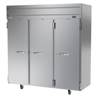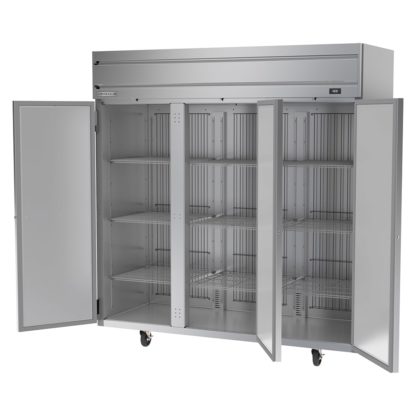 Horizon Series Freezer, reach-in, three-section, 69.1 cu. ft., (1) center solid door right-hand hinged, (1) right solid door right-hand hinged, (1) left solid doors left-hand hinged, door locks, (9) adjustable shelves, electronic control, LED interior lighting, digital display, expansion valve technology, automatic defrost, top-mounted self-contained refrigeration, stainless steel front, gray painted sides, stainless steel interior, (2) 3/4 HP, cULus, UL EPH Classified, UL-Sanitation, Made in USA