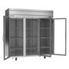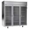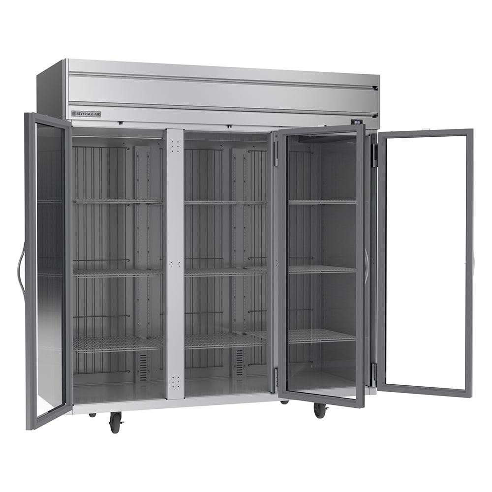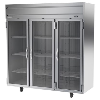 Horizon Series Refrigerator, reach-in, three-section, 71.52 cu. ft., (1) center glass door right-hand hinged, (1) right glass door right-hand hinged, (1) left glass door left-hand hinged, (9) shelves, electronic control, LED interior lighting, digital display, stainless steel front & sides, aluminum interior, top-mounted self-contained refrigeration, Variable Speed Technology, cULus, UL EPH Classified, UL-Sanitation, Made in USA
