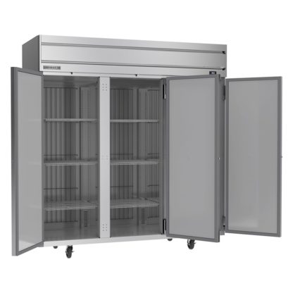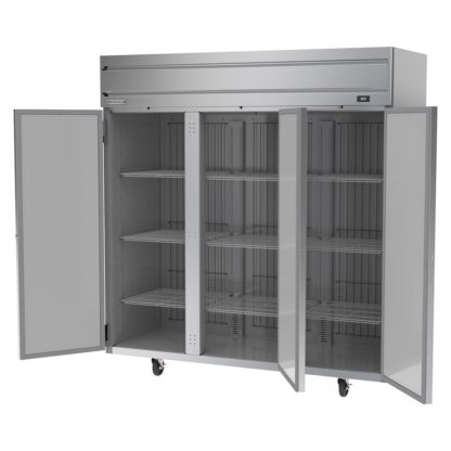 Horizon Series Refrigerator, reach-in, three-section, 71.52 cu. ft., (1) center solid door right-hand hinged, (1) right solid door right-hand hinged, (1) left solid door left-hand hinged, door locks, (9) shelves, electronic control, LED interior lighting, digital display, stainless steel front & sides, aluminum interior, top-mounted self-contained refrigeration, Variable Speed Technology, cULus, UL EPH Classified, UL-Sanitation, Made in USA
