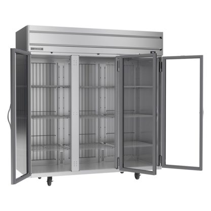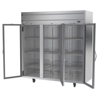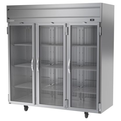 Horizon Series Refrigerator, reach-in, three-section, 71.52 cu. ft., (1) center glass door right-hand hinged, (1) right glass doors right-hand hinged, (1) left glass doors left-hand hinged, (9) shelves, electronic control, LED interior lighting, digital display, stainless steel exterior & interior, top-mounted self-contained refrigeration, Variable Speed Technology, cULus, UL EPH Classified, UL-Sanitation, Made in USA