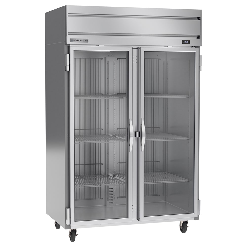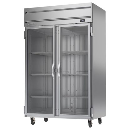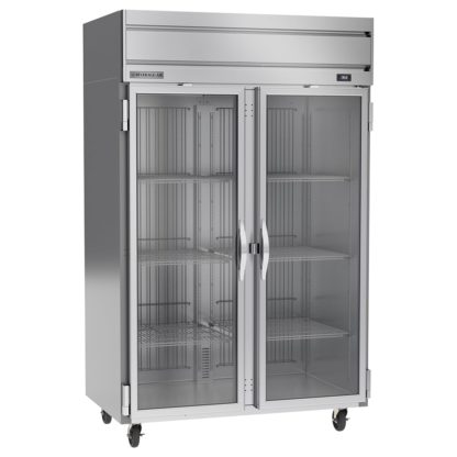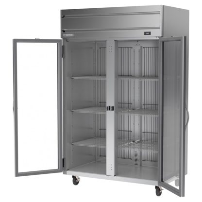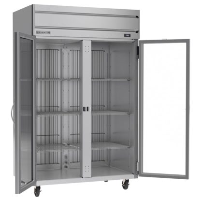 Horizon Series Refrigerator, reach-in, two-section, 46.88 cu. ft., (1) right-hand hinged glass door, (1) left-hand hinged glass door, (6) shelves, electronic control, LED interior lighting, digital display, stainless steel front, gray painted sides, stainless steel interior, top-mounted self-contained refrigeration, Variable Speed Technology, cULus, UL EPH Classified, UL-Sanitation, Made in USA