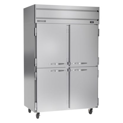 Horizon Series Refrigerator, reach-in, two-section, 45.2 cu. ft., (2) right-hand hinged half solid doors, (2) left-hand hinged half solid doors, door locks, (6) shelves, electronic control, LED interior lighting, digital display, stainless steel front, gray painted sides, stainless steel interior, top-mounted self-contained refrigeration, Variable Speed Technology, cULus, UL EPH Classified, UL-Sanitation, Made in USA