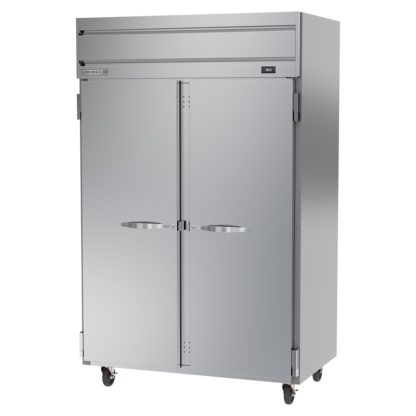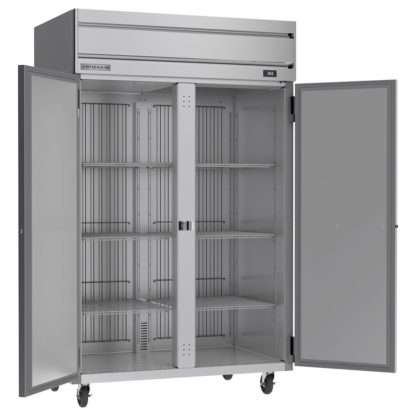 Horizon Series Refrigerator, reach-in, two-section, 45.2 cu. ft., (1) right-hand solid hinged door, (1) left-hand solid hinged door, door locks, (6) shelves, electronic control, LED interior lighting, digital display, stainless steel front, gray painted sides, stainless steel interior, top-mounted self-contained refrigeration, Variable Speed Technology, cULus, UL EPH Classified, UL-Sanitation, Made in USA