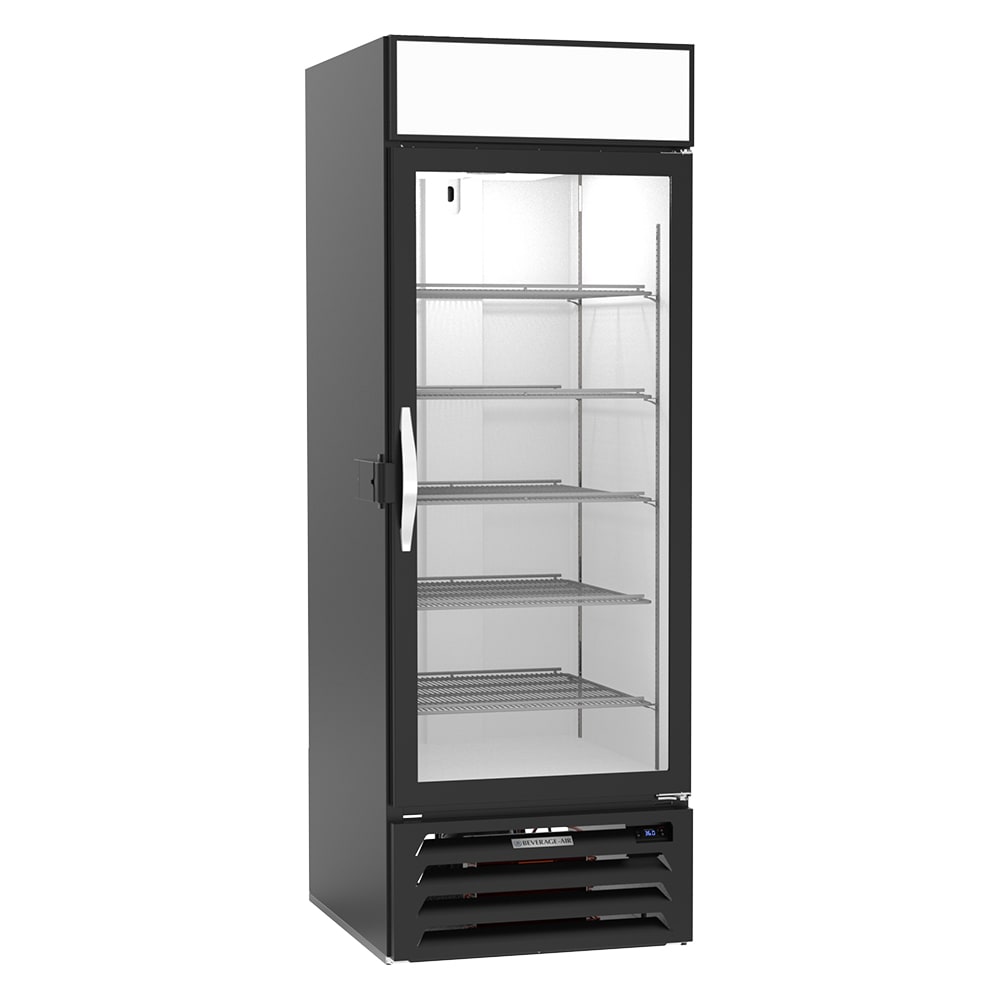Designed to promote impulse purchases and boost sales, the Beverage Air MMF23HC-1-B-IQ MarketMax one-section display freezer grabs customers’ attention with an illuminated top panel. The hinged door on this unit has a triple-pane glass window that encourages guests to look at the product. Because the door self-closes, it retains cold air, and it has a hold-open feature that makes it convenient to stock the interior.