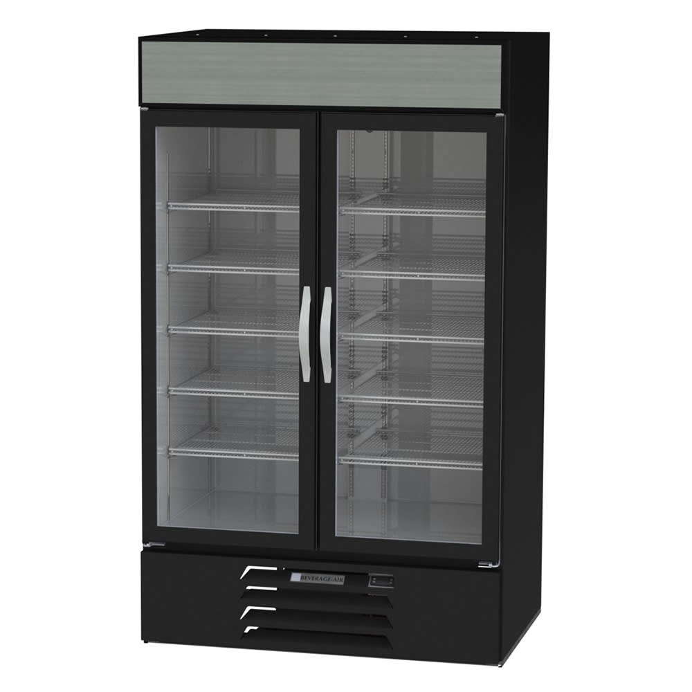 Using environmentally friendly R290 refrigerant, the Beverage Air MMF44HC-1-B MarketMax two-section freezer effectively maintains temperatures at or lower than 0 degrees Fahrenheit. It features two sections, each with five steel shelves coated in corrosion-resistant epoxy.