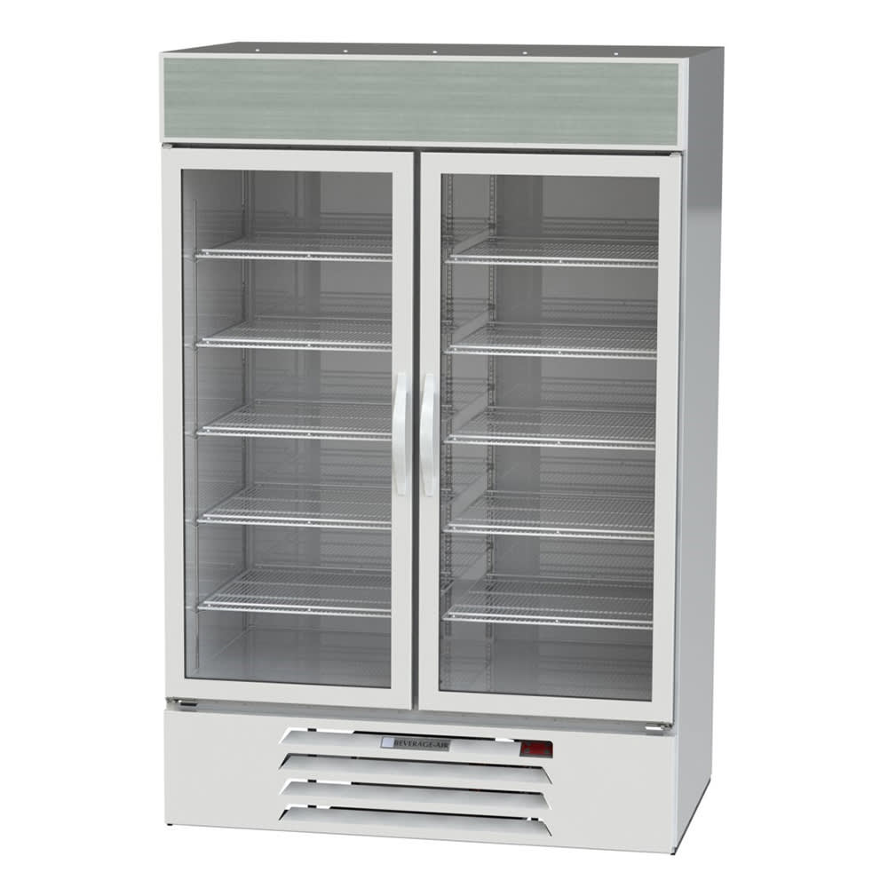 The cabinet in the Beverage Air MMF44HC-1-W-IQ MarketMax one-section freezer merchandiser has 10 epoxy-coated steel shelves, and product stored on these shelves is visible under LED lights and through triple-pane glass swing doors. Self-closing to retain cold air, the doors have a hold-open feature so users can stock product into the cabinet. The cabinet exterior is white, so it fits into most settings.
