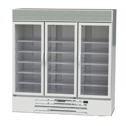 With three glass doors, the Beverage Air MMF72HC-5-W commercial cold merchandiser enables customers and employees to see inside the unit and preview product, gauging when restocking is needed. While the doors self-close to keep the cold in, they can be fixed open at 120 degrees. LED lighting brightens the freezer interior and gives customers excellent product visibility.