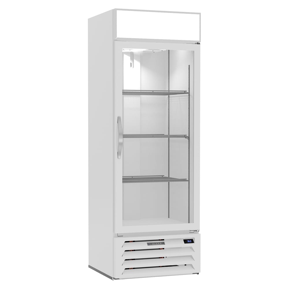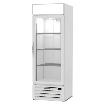 MarketMax Refrigerated Merchandiser, reach-in, one-section, 27-1/4″W, 78-1/8″H, (1) double pane hinged glass door, 17.87 cu. ft. capacity, electronic control, digital display, (3) epoxy coated steel shelves, LED interior lighting, self closing door with automatic hold-open feature, bottom-mounted refrigeration, white interior & exterior, R290 Hydrocarbon refrigerant, 1/4 HP, cULus, UL EPH Classified, UL-Sanitation, Made in USA