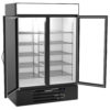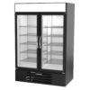 MarketMax DUAL TEMP Merchandiser, reach-in, two-section, 21.01 cu. ft (freezer, left) & 21.01 cu. ft. (refrigerator, right), (2) hinged glass doors – freezer section has heated triple pane glass & refrigerator section has double pane glass, electronic control, digital display, (10) epoxy coated steel shelves, LED interior lighting, self closing door with automatic hold-open feature, bottom-mounted refrigeration, black exterior, white interior, R-290 Hydrocarbon refrigerant, refrigerator section – 1/4 HP, freezer section – 3/4 HP, cULus, UL-EPH Classified, UL-Sanitation, MADE IN USA