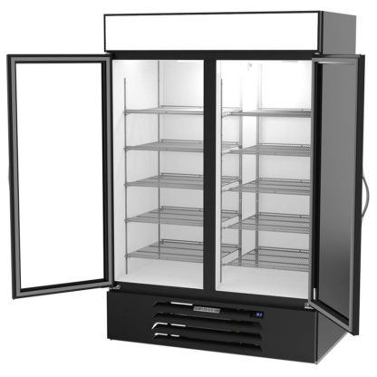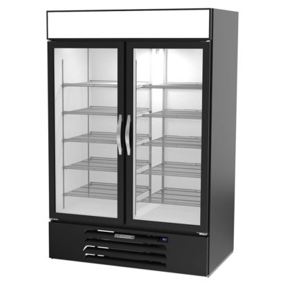 The Beverage Air MMRF49HC-1-A-BW two-section dual-temperature merchandiser functions as both a refrigerator and a freezer, giving users flexibility in cold storage with one machine. Its glass doors let customers walking by view the products inside without opening the doors, conserving cold air. For maximum energy efficiency and insulation against heat, the freezer door section is triple paned and the refrigerator door section is double paned.