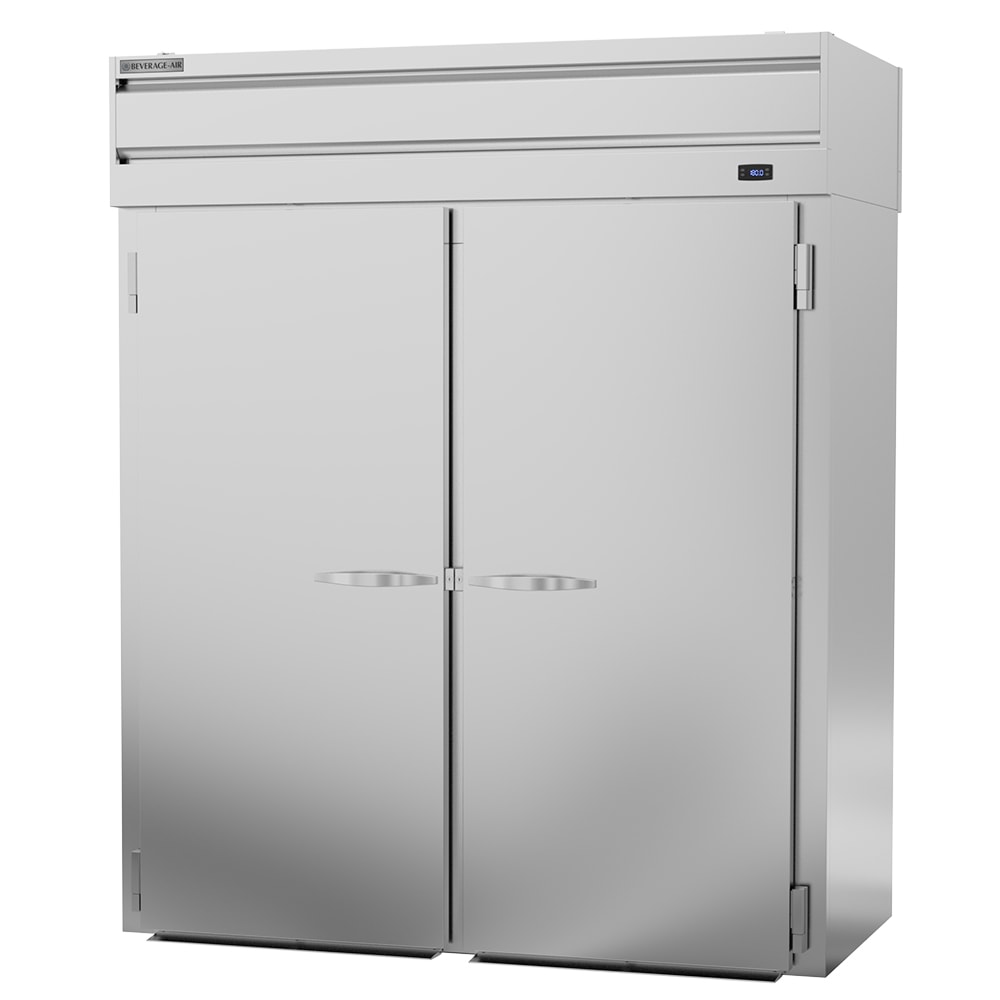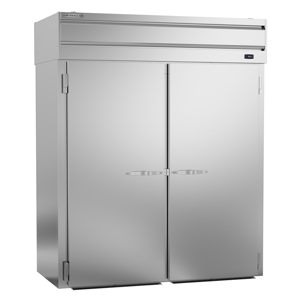 The Beverage Air PHI2-1S warming cabinet is a roll-in unit that accepts two full-height racks. Each of the cabinet’s two sections has a solid door with locks that restrict access to the cabinet. For durability in a high-volume environment, this unit’s exterior is made of stainless steel.