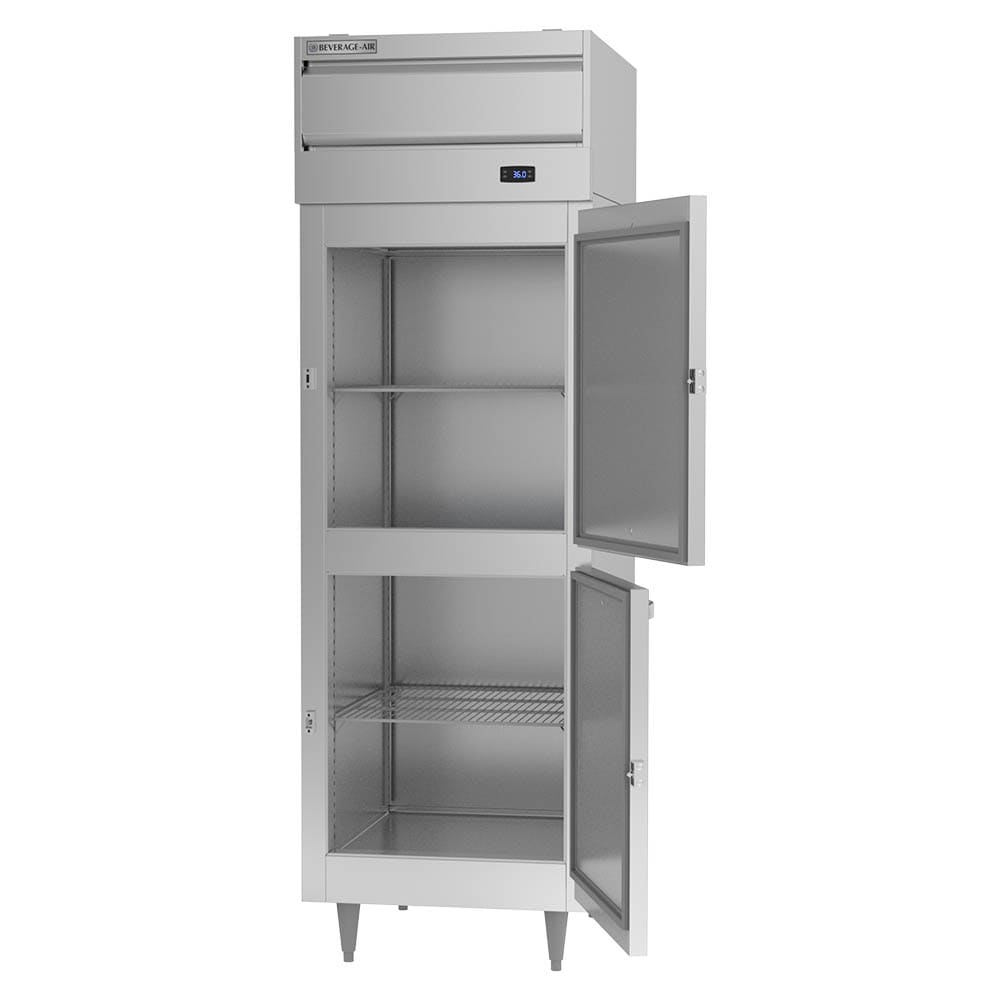 The Beverage Air PR1HC-1AHS refrigerator has a single reach-in section guarded by two half-doors, so when users open the cabinet, less heat transfer occurs than with full doors. These doors can be locked to protect product. To defend against rust and dents, the exterior is made of stainless steel.