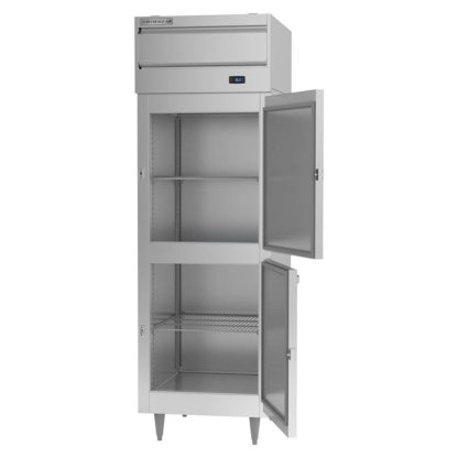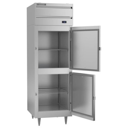 P-Series Refrigerator, reach-in, one-section, 21.01 cu. ft., (2) solid half doors (lockable), (3) adjustable shelves, exterior digital thermometer, LED lighting, top-mounted self-contained refrigeration, aluminum interior, exterior stainless steel front & sides (galvanized top, bottom & back), 1/3 HP, cULus, UL EPH Classified, UL-Sanitation, MADE IN USA