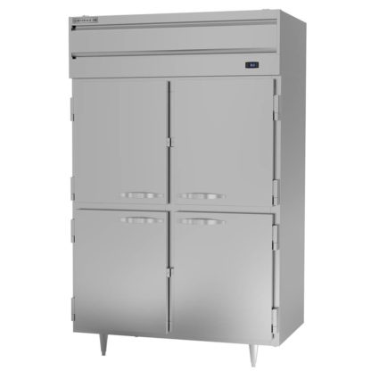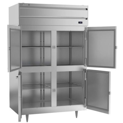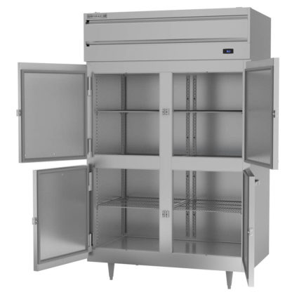 P-Series Refrigerator, reach-in, two-section, 44.57 cu. ft., (4) solid half doors (lockable), (6) adjustable shelves, exterior digital thermometer, LED lighting, top-mounted self-contained refrigeration, aluminum interior, exterior stainless steel front & sides (galvanized top, bottom & back), 1/3 HP, cULus, UL EPH Classified, UL-Sanitation, MADE IN USA
