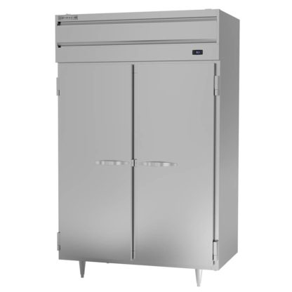 P-Series Refrigerator, reach-in, two-section, 44.57 cu. ft., (2) full height solid doors (lockable), (6) adjustable shelves, exterior digital thermometer, LED lighting, top-mounted self-contained refrigeration, aluminum interior, exterior stainless steel front & sides (galvanized top, bottom & back), 1/3 HP, cULus, UL EPH Classified, UL-Sanitation, MADE IN USA